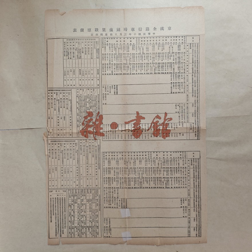 京汉全路行车时刻与里程票价表