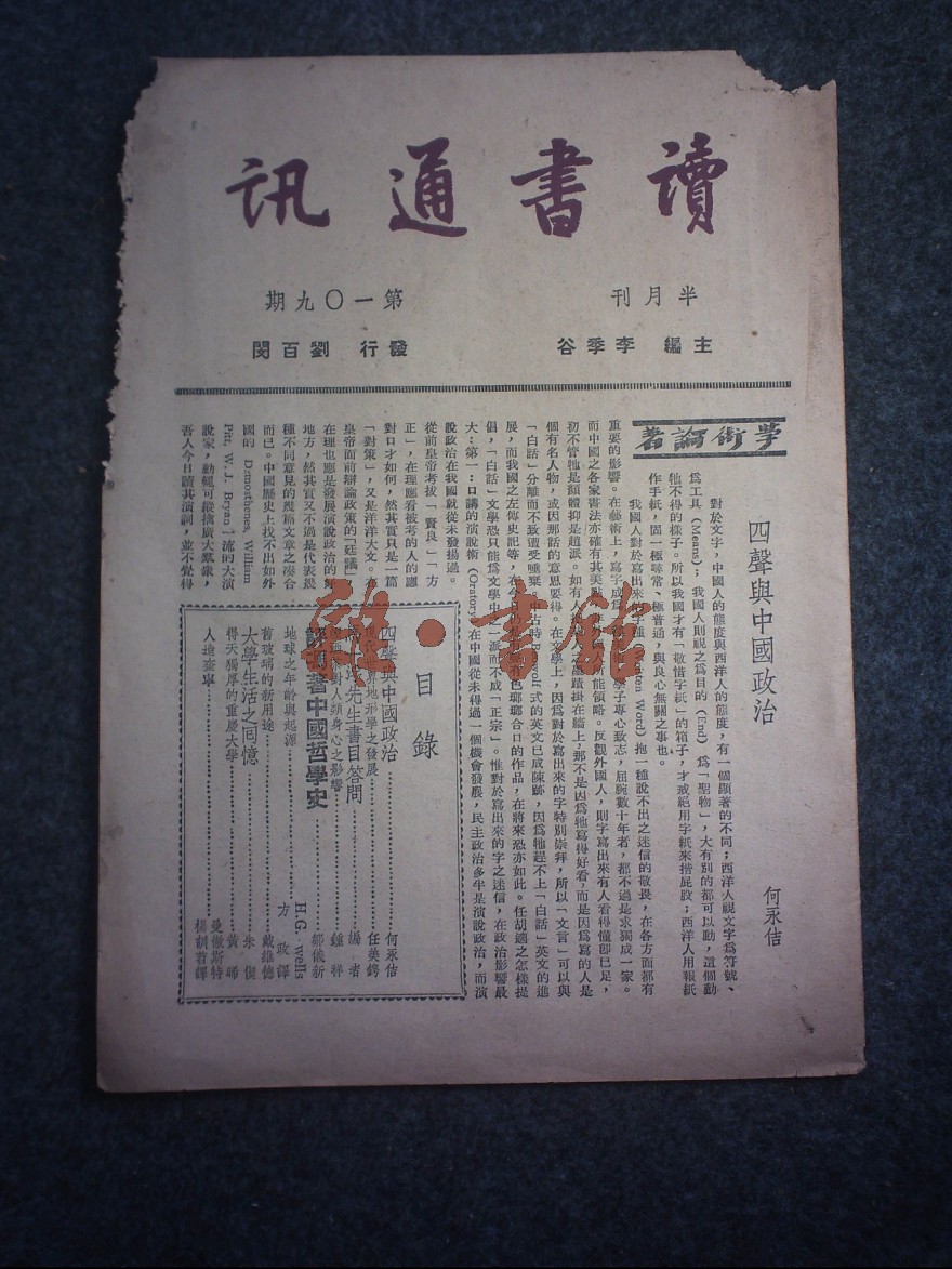 出版者:中国文化服务社读书会