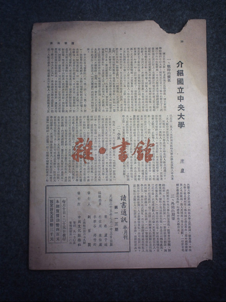 出版者:中国文化服务社读书会